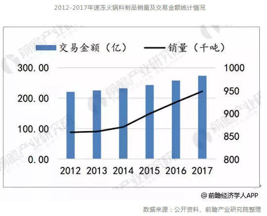 2012-2017年速凍火鍋料制品銷量及交易金額統(tǒng)計情況